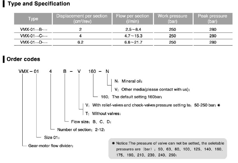 VMX-01 Series Gear Flow Divider
