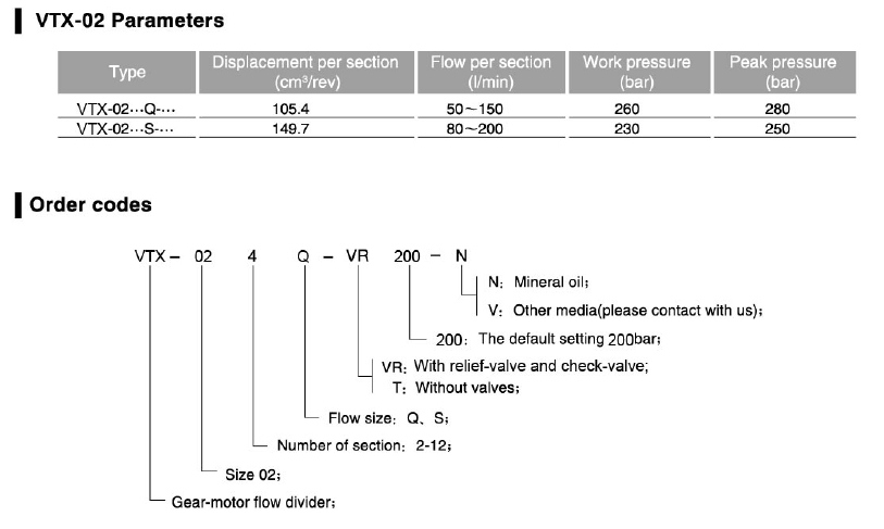 VTX-02 Series Gear Flow Divider